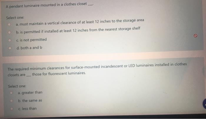 A Pendant Luminaire Mounted in a Clothes Closet ___.